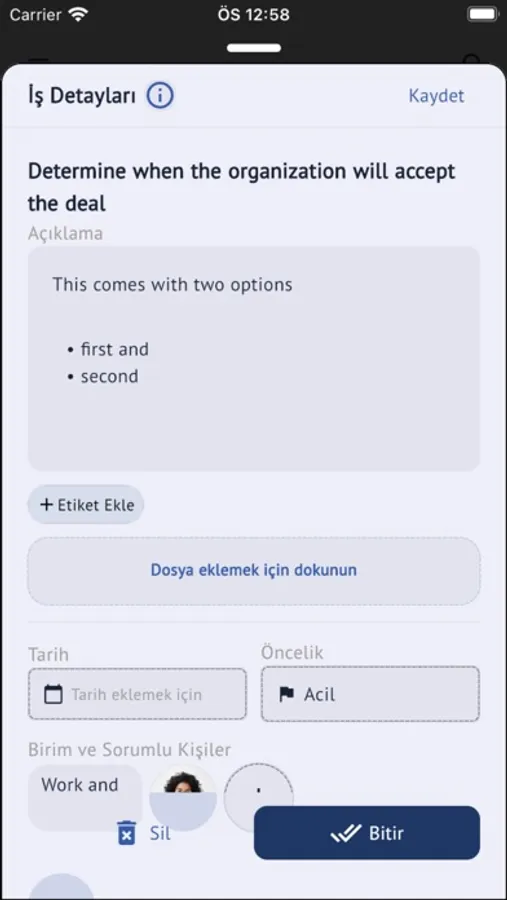 Bitir, ekibinizi ve birimlerini oluşturup gerekli yetkilendirmeleri yaparak işlerinizi yönetebileceğiniz kullanımı kolay bir uygulamadır