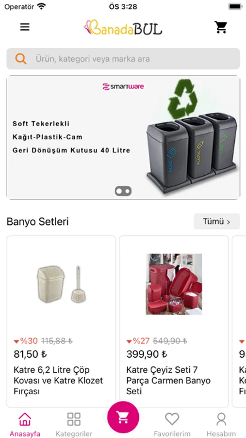 Banadabul Online Alışveriş uygulamasını indirerek ev gereçleri ihtiyaçlarınızı bu uygulamada bulabilirsiniz. Her güne özel kampanyalar ve başka hiçbir yerde bulamayacağınız indirimler, Banadabul Online Alışveriş Mobil uygulamasında. Ev gereçleri, Çocuk ve Bebek odası, Banyo ve Mutfak Gereçleri, Saklama ve Düzenleme, Pratik Mutfak gereçleri ve çok daha fazlası! Smartware ve Fiore markalarımızın sana özel indirim ve kampanya fırsatlarını kaçırma!