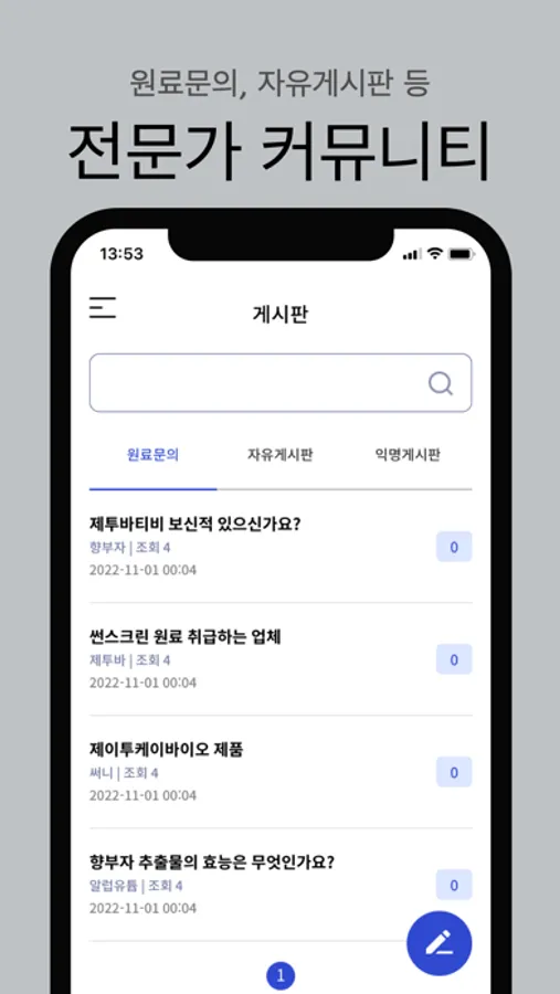 어렵고 복잡한 화장품 관련 질문들을 게시판을 통해 질문하고 전문가들에게 답변 받는 전문가 커뮤니티