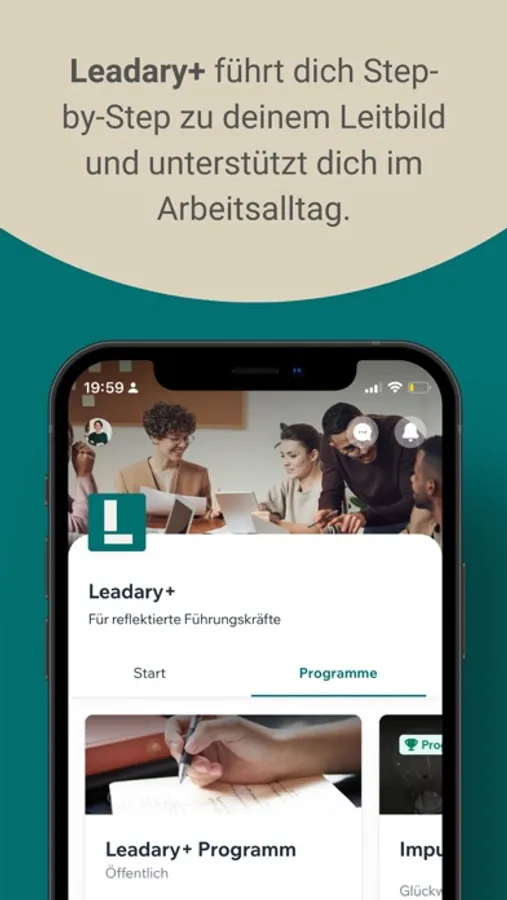 Hier kommt Leadary+ ins Spiel: die App stellt dir Aufgaben und Fragen, die dir bei der Reflexion helfen. Zunächst begleitet sie dich auf deinem Weg zum persönlichen Leitbild und Selbstverständnis als Führungskraft.