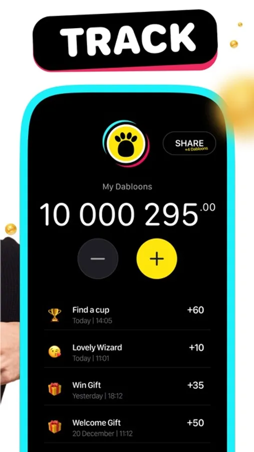 Download the App and keep track of coins in your personal Dabloons wallet!