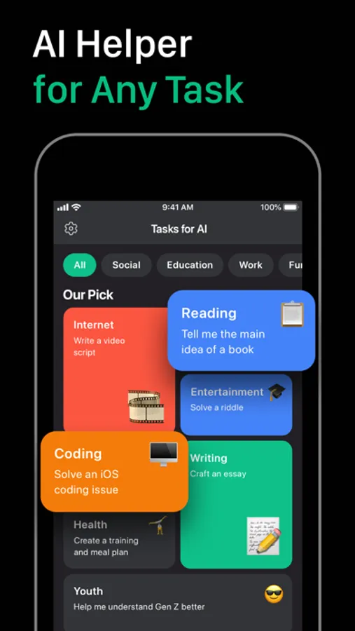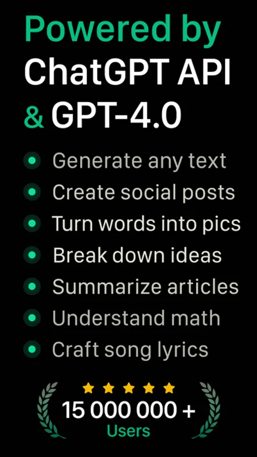 Simply type in your request, and the app will go through the tedious writing routine for you. Start generating creative content and upgrade your writing with our universal AI chatbot here and now!