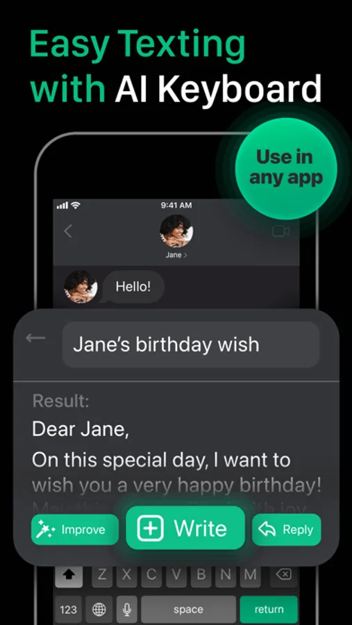 Fill your keyboard with the power of AI and use it in any app! Enhance your writing on the go, generate text directly from your device, and get perfect responses to messages with ChatOn’s smart keyboard!