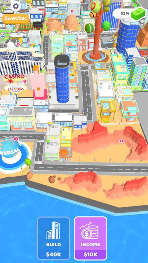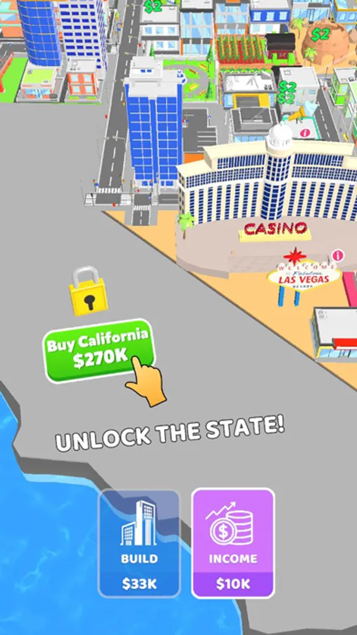 Buy new states, build a building, upgrade a building, earn money and become a billionaire.