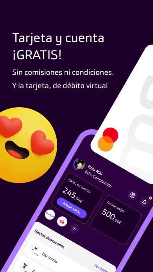 - Cuenta bancaria y tarjeta de débito sin comisiones, ni condiciones: obtienes una cuenta y tarjeta de débito gratis.