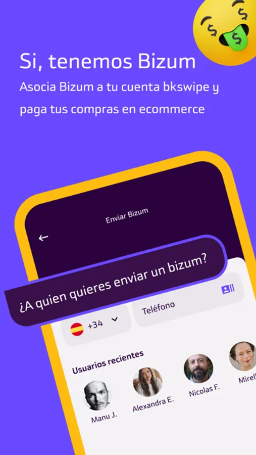 - Sí, tenemos Bizum: puedes vincular Bizum a tu cuenta bkswipe, y así recibir o enviar dinero a tus amigos.