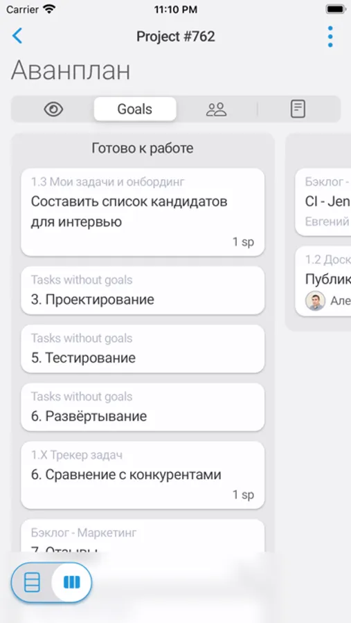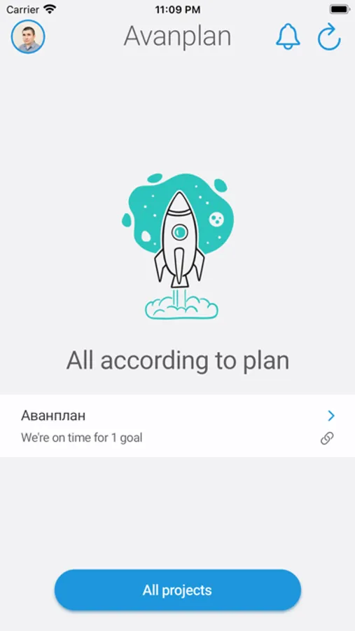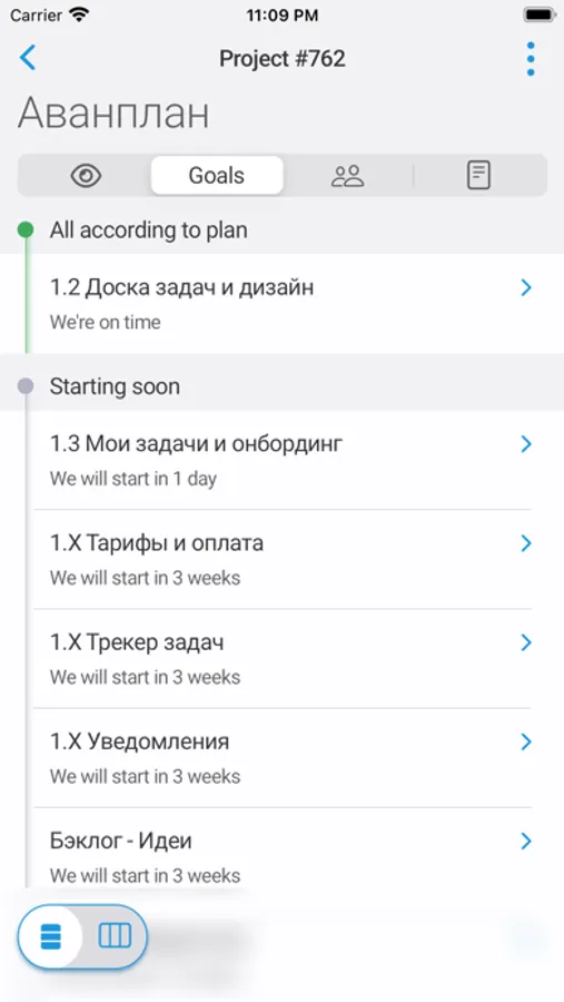 The app is designed to gathering information about the status of projects, consisting of goals and tasks. In the case of personal use, this is an improved analogue of the TODO-app or task-tracker.