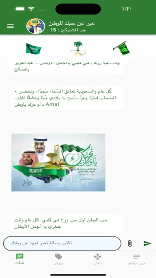 تطبيق لكتابة رسالة حب وانتماء لهذا الوطن العظيم وهي عبارة عن صفحة مشاركة تعبيرية عن حب الجميع للوطن