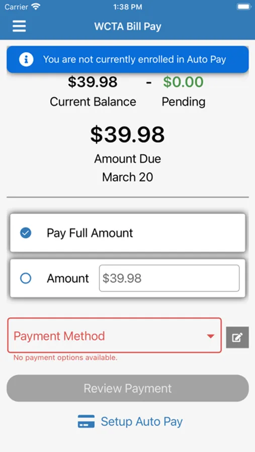 WCTA's Bill Pay app provides a wide range of options for managing your billing account.