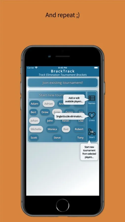 Whether you're competing in ping pong, chess, badminton, baseball, billiards, or wrestling, simply add your players or teams and BrackTrack will create an intuitive, streamlined bracket, highlighting the victorious and the defeated.