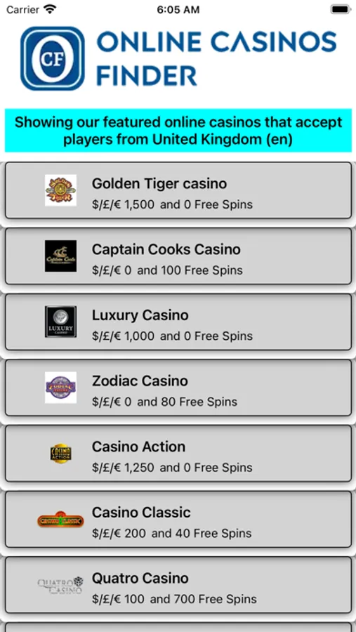 The OCF - Online Casinos Finder app brings you honest reviews of a hand-picked selection of the top online casinos right in the palm of your hand. We have scoured the web to bring you some of the finest online gambling establishments you can find. The casinos offer gambling in a variety of casino games like real money slots (slot machines), blackjack, and roulette. When you download the app, you get a customized selection of casinos that accept players from your country. You would therefore need to give us permission to determine your location to use the app.