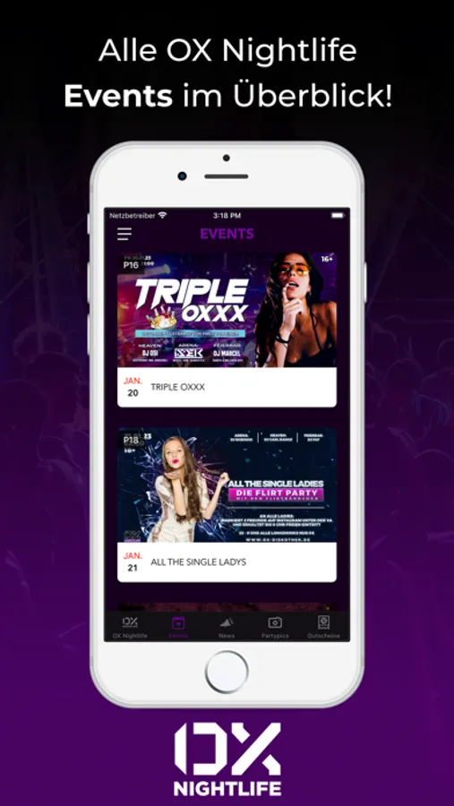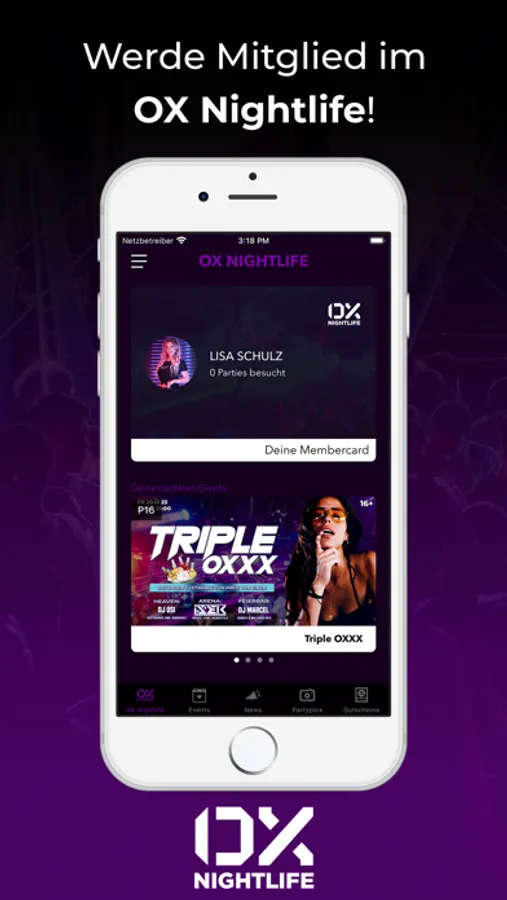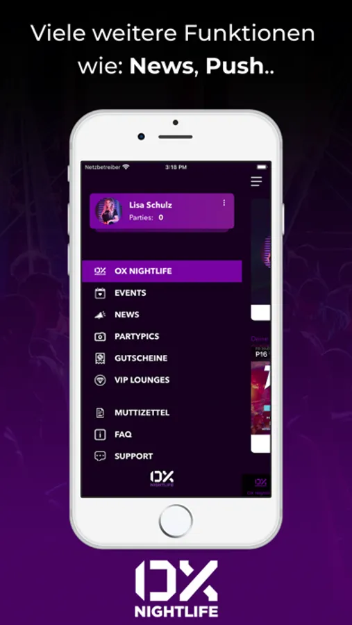 Lade dir unsere OX Nightlife App und werde Mitglied im OX Nightlife.