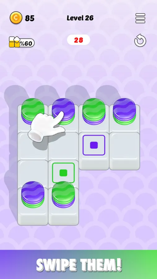 As you swipe the blocks around, you’ll need to carefully plan your moves to make sure that each block ends up on its own color. This can be tricky, as the blocks can only move in the direction you swipe them and you have to work around the other blocks on the grid.