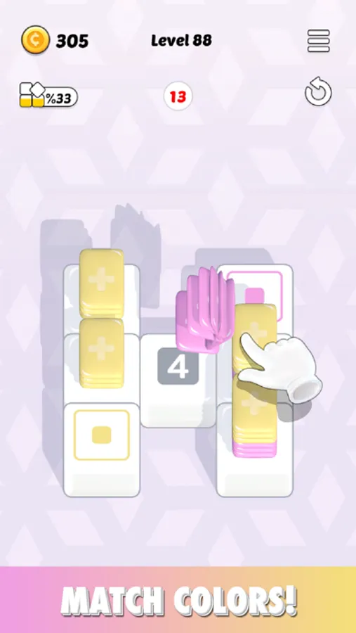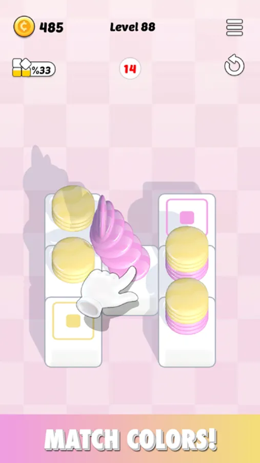 In the game, you are presented with a grid of colored blocks on a platform. Each block is a different color, and the colors are arranged randomly on the grid. Your goal is to swipe the block so that each one ends up on a space of the same color.