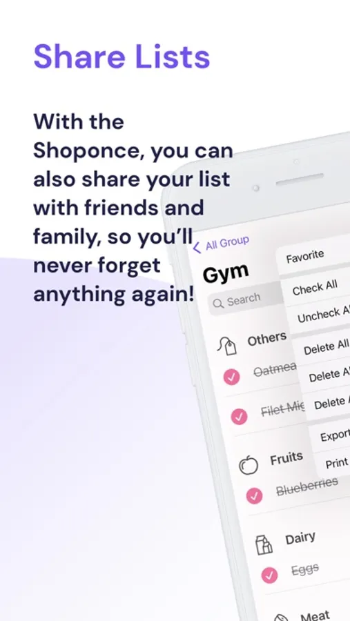 Shoponce: Grocery Shopping List App is an easy to use tool to help you organize your grocery shopping and save time. It allows you to create lists with items and prices, add items to existing lists, and share lists with friends. You can also customize the app by adding favorite stores and creating custom categories to make sure you get exactly what you need. Additionally, the app provides reminders to help you get the items on your list, as well as notifications when items are on sale. It also provides detailed nutritional information to help you make better decisions about what you buy. Finally, the app features a barcode scanner so you can quickly add items to your list.