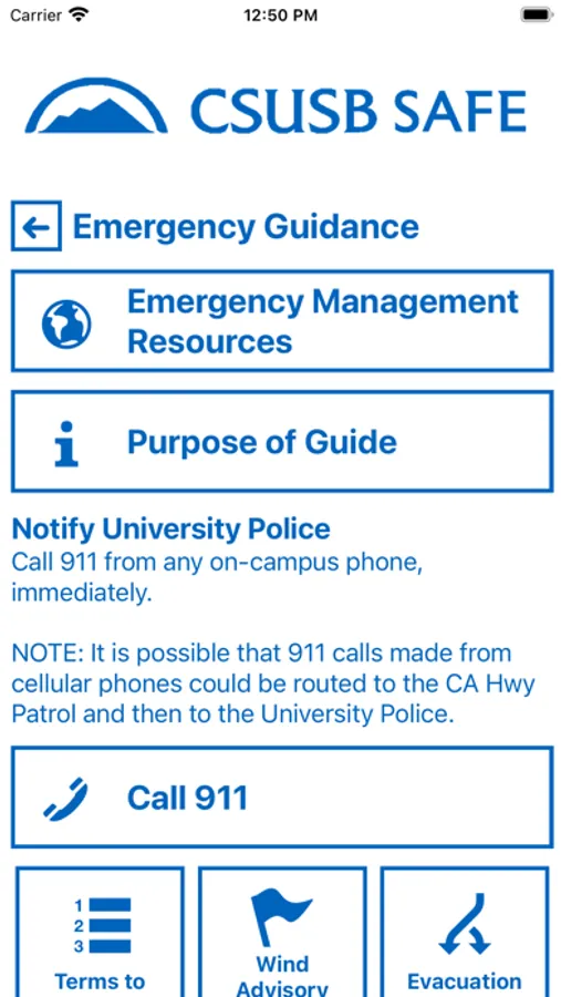 - Emergency Plans: Campus emergency documentation that can prepare you for disasters or emergencies. This can be accessed even when users aren’t connected to Wi-Fi or cellular data.