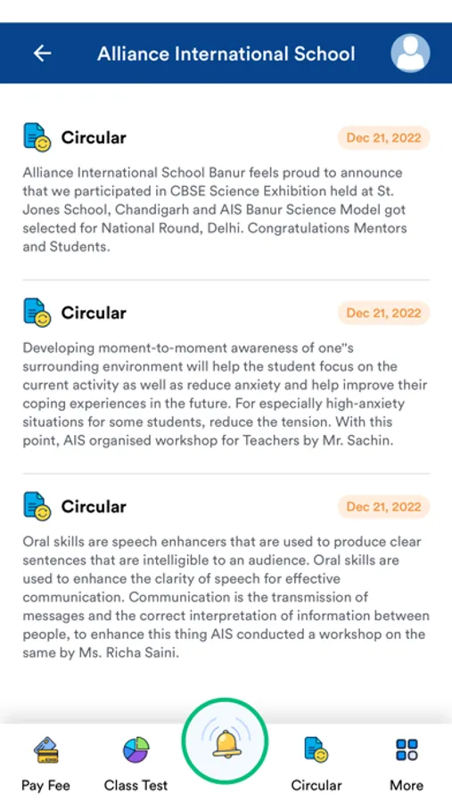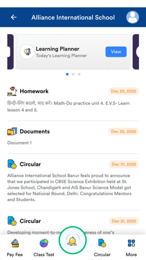Our mobile application for parents & teachers Alliance International School, Banur App – enhances parent involvement through simplified communication and transactions to make the job of the teacher and school easier. They can now send communication in a paperless manner, and assign homework directly from the board in the classroom.