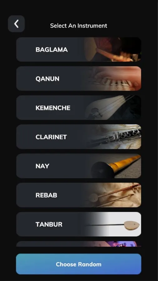 10 different instruments: Baglama, Qanun, Turkish Classical Kemenche, Clarinet, Nay, Rebab, Tanbur, Oud, Cello, Stringed Tanbur