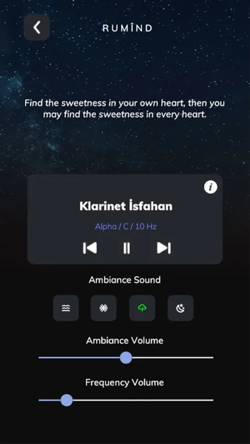 Rumind sets the appropriate tone, brainwave, and the ambiance according to your local time and choice on meditation category. All you have to do is to choose the instrument you want to listen, then close your eyes.