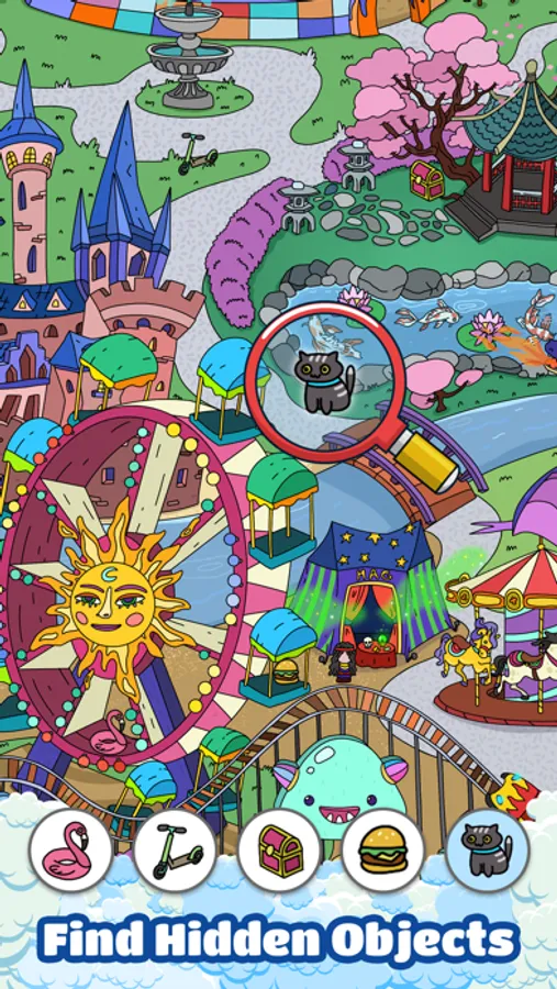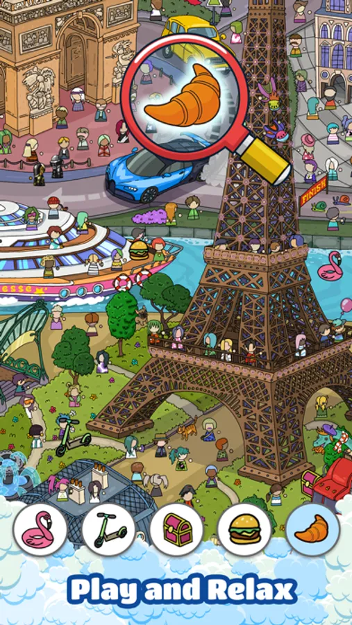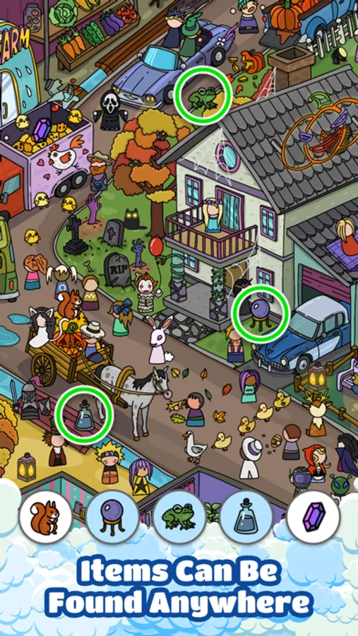 Visit the cute fictional town where life is in full swing! In this game, all you need to do is seek the hidden objects on a huge colorful map. However, some items are located in unexpected places. Will you find the hidden objects? Spot it!