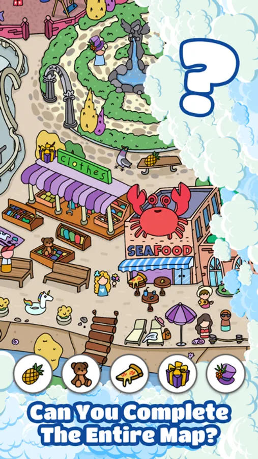 - INTUITIVE GAMEPLAY. Seek the hidden objects on the map and tap on them once found. Can’t see an item? Use a hint and find out where the thing you’re looking for is.