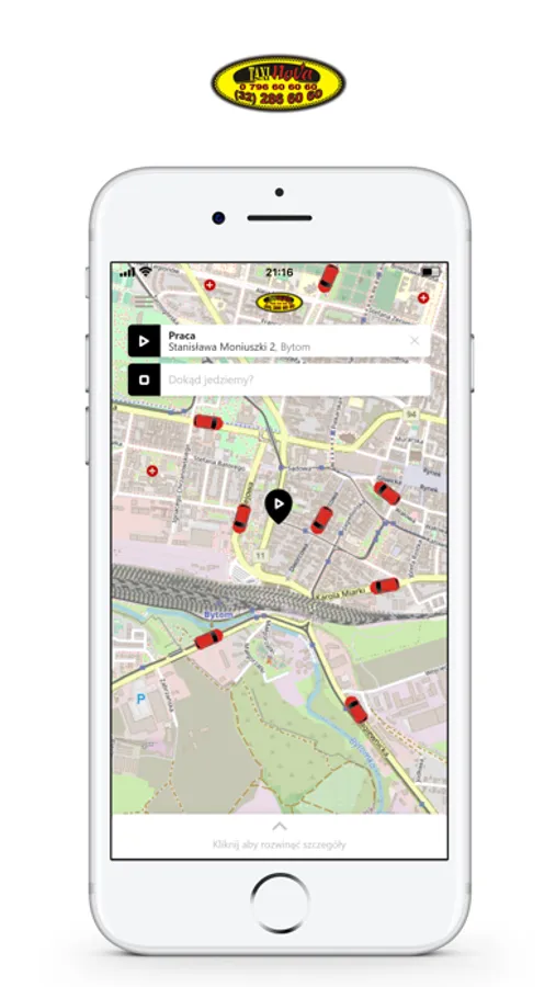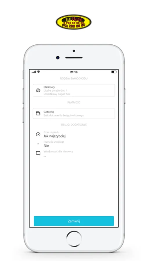 W związku z czym, uruchomiliśmy aplikację mobilną, aby to klient mógł zdecydować, czy chce tradycyjnie zamówić taksówkę, czy może jednak woli zrobić to jednym kliknięciem na swoim smartfonie. Nasza aplikacja pozwoli również wybrać cechy samochodu, pokazuje przybliżony czas dojazdu, a nawet wskaże na mapie dokładnie, w którym miejscu znajduje się podjeżdżająca taksówka, a wszystko to na ekranie telefonu. Aplikacja to oszczędność czasu i wygoda w sposobie zamawiania taksówki.