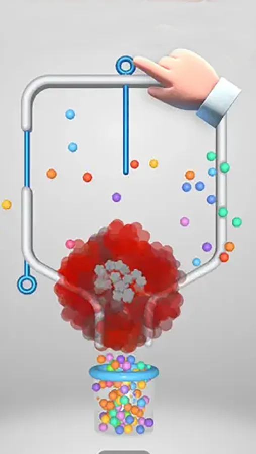 Remove all pins in the correct order to get the balls into the cup. Can you make it?