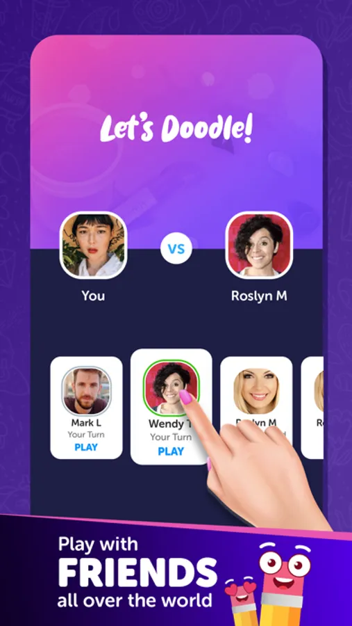 Play Doodle Me with anyone you want whether it’s your best friend, an estranged cousin or someone random from across the world. Every friend is just a drawing away!