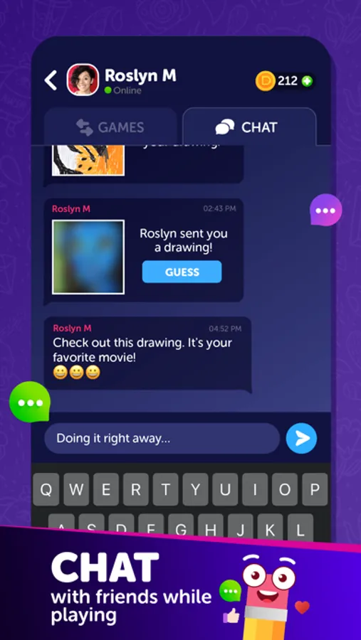 Share drawings and create an experience with your friends by building a streak. They can guess their drawings and challenge you to guess theirs.