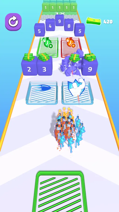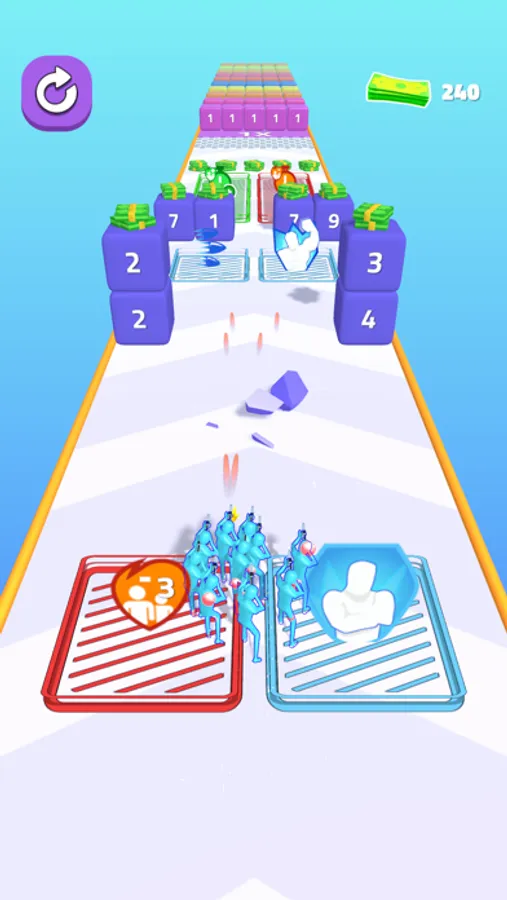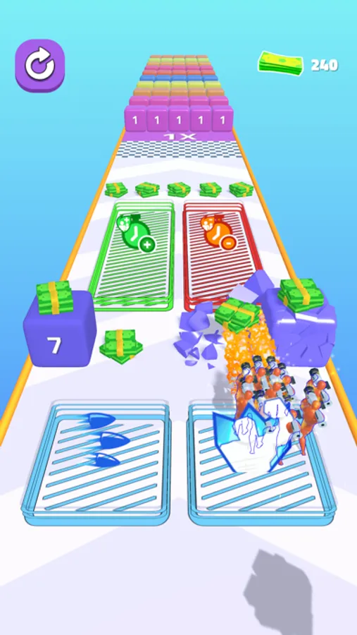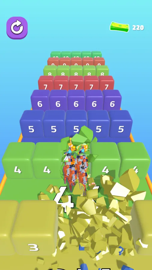 Shoot obstacles and collect money.