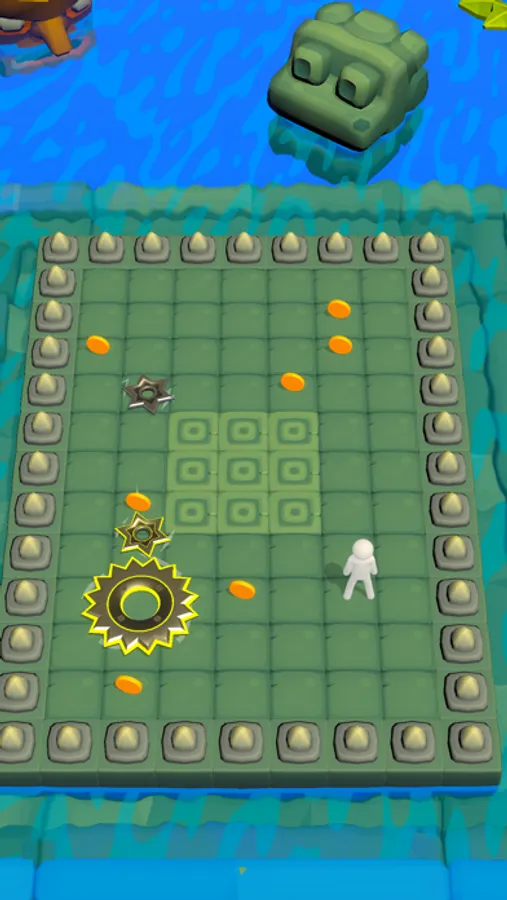 Beware of disks. Try to collect coins and rewards.