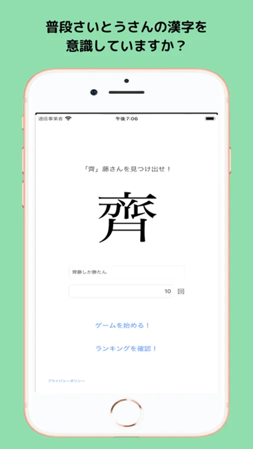 このゲームでは、「さいとう」さんの中でも「齊」藤さんを見つけ出し早押しをして、タイムを競うアプリです!