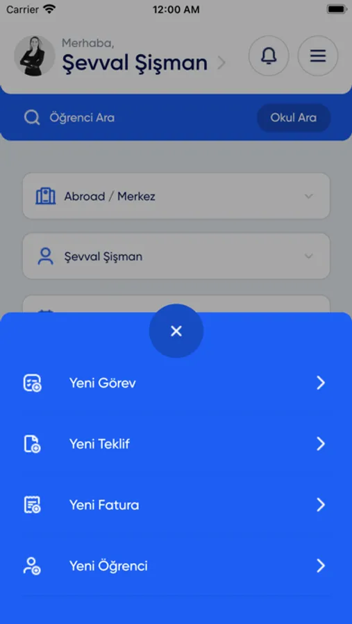 Görev, fatura, teklif, öğrenci kaydı oluşturabilir, gönderebilir ve yönetebilirsiniz.