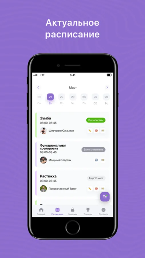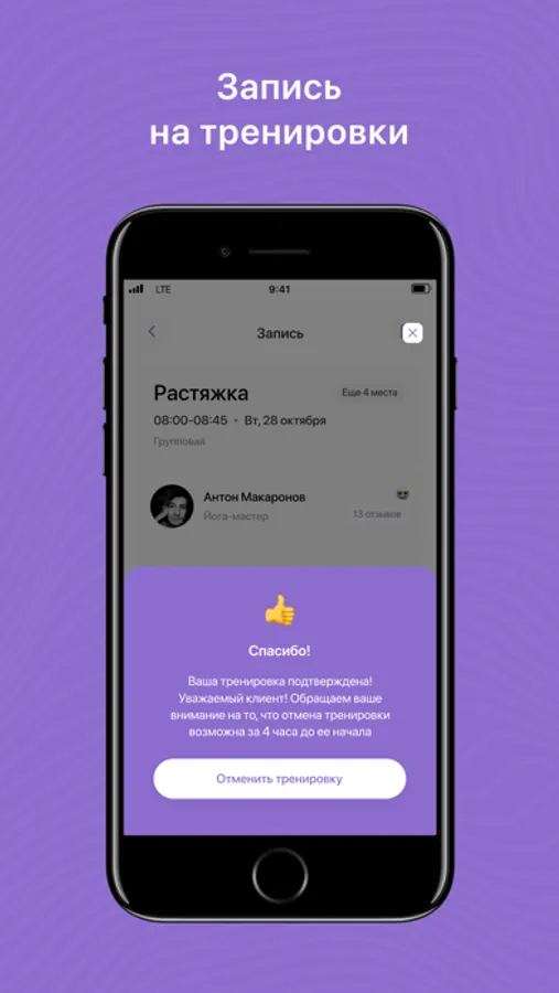 Получать PUSH-уведомления о предстоящей тренировке за 3 часа;