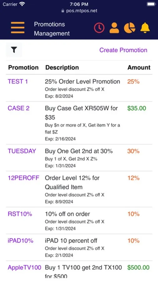 MT-POS System includes advanced Catalog Manager, enabling management of Physical and Digital Goods and Services, Categories, Promotions, Features, Taxes, Serialized and Non-Serialized products.