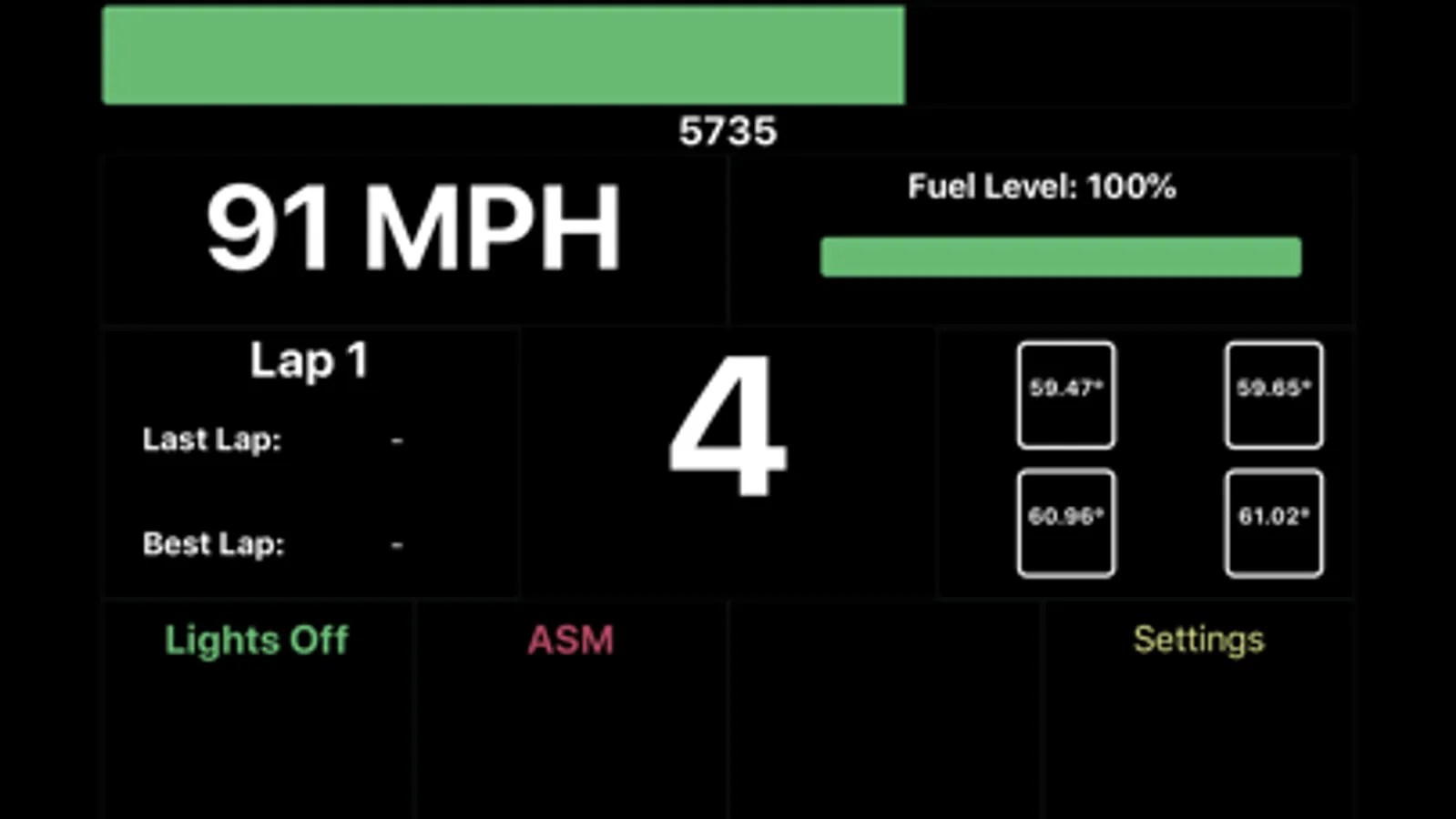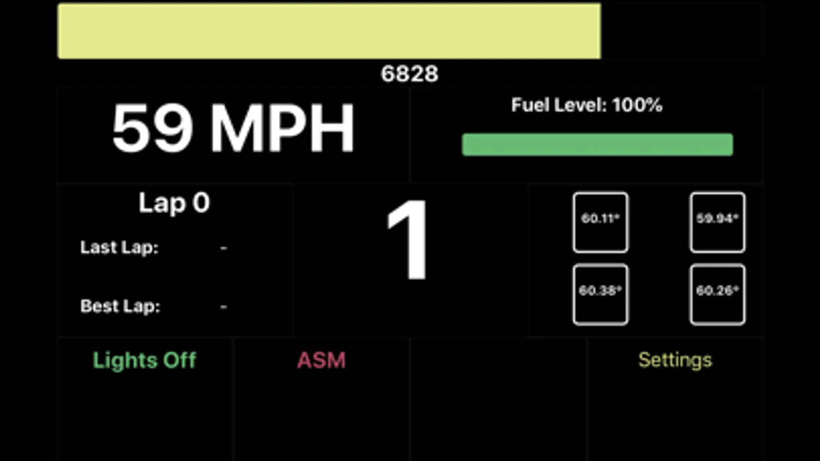- Fuel levels (for those fuel saving races)