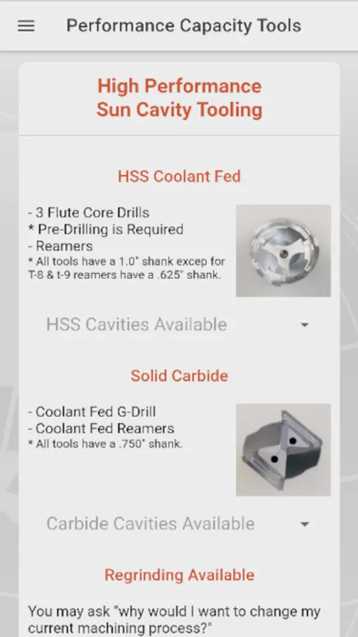 • Cutting Tools supported are: Both Drills and reamers constructed of High Speed Steel, High Speed Steel Coolant Fed, Solid Carbide, and Core Drills.