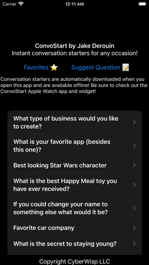 Plus see a random conversation starter on your Home Screen or Lock Screen with the ConvoStart Widget!