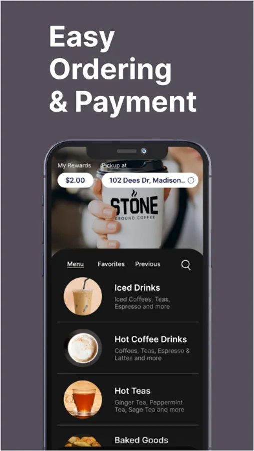 The Stone Ground Coffee app allows customers to easily order ahead and receive great rewards.
