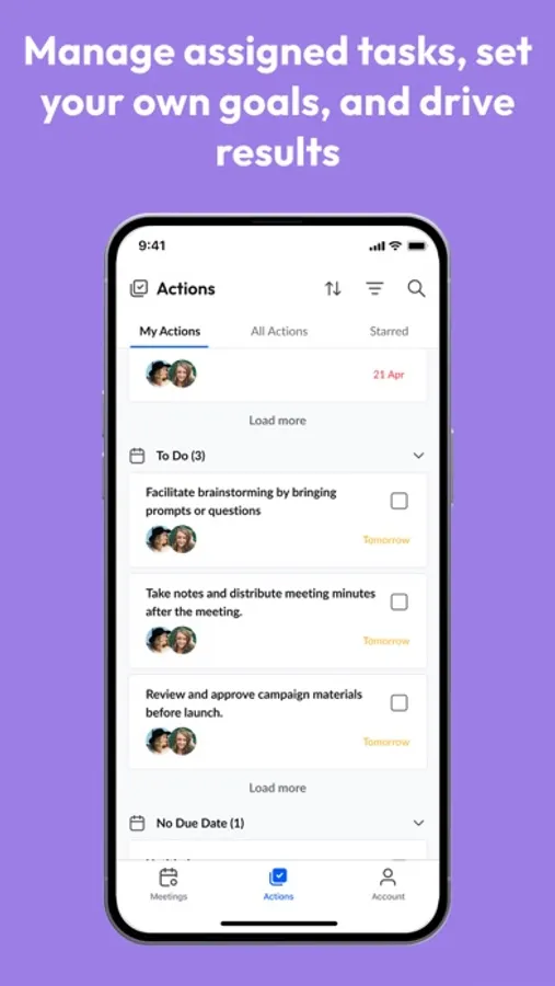 - Track actions and tasks effectively.
