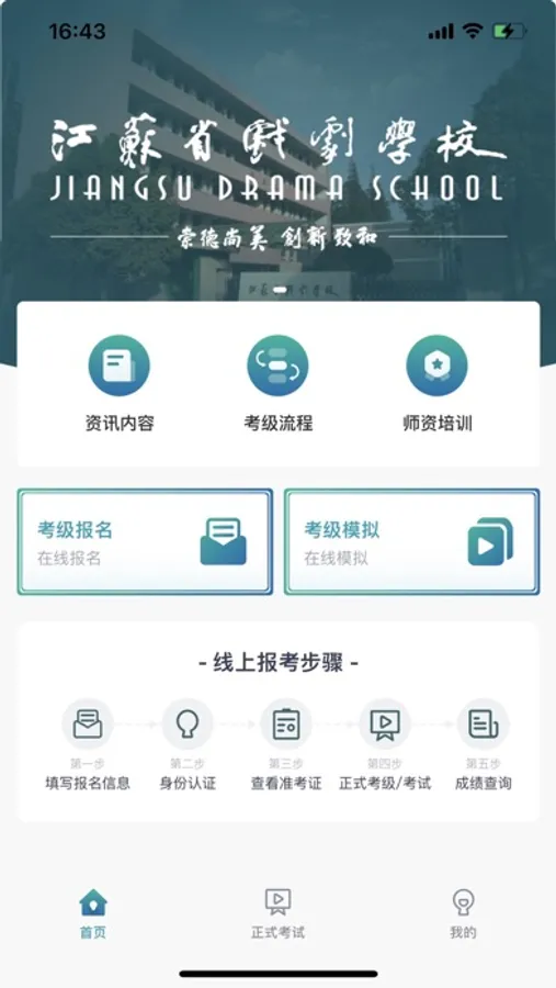 江苏省戏考级是一款综合性社会艺术水平考级服务的平台,由考生端、管理端、机构端、评分端、评分监控组成,支持线下和线上两种考级场景。考生通过APP可完成注册登录、报名考试、在线缴费、考级模拟、正式考级、成绩证书查询等流程;评委通过评分端以互联网方式实现考评活动;监考员通过评分监控以“互联网+”来完成考评监控活动;综合服务平台简化考级和考评组织流程,达到全部一站式线上服务。