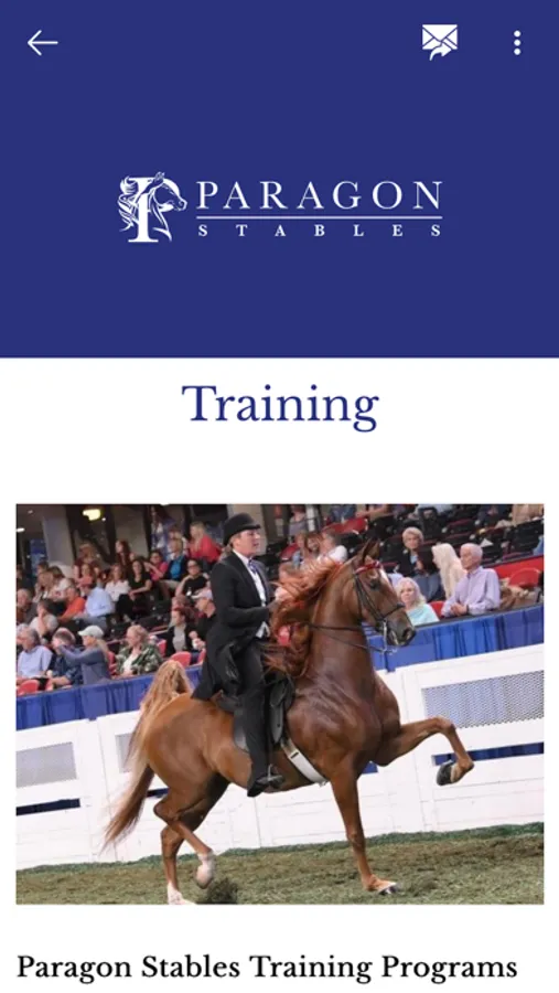 Paragon Stables provides Full Board & Training for American Saddlebreds, Morgans, and Hackney Ponies as well as other show horse breeds.