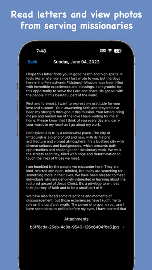 Stay connected with missionaries and read their updates directly from the field. Our app brings you closer to the global mission efforts of your ward, providing you with first-hand accounts, testimonies, and inspiring stories. Share in their experiences as they spread the message of faith and hope around the world.