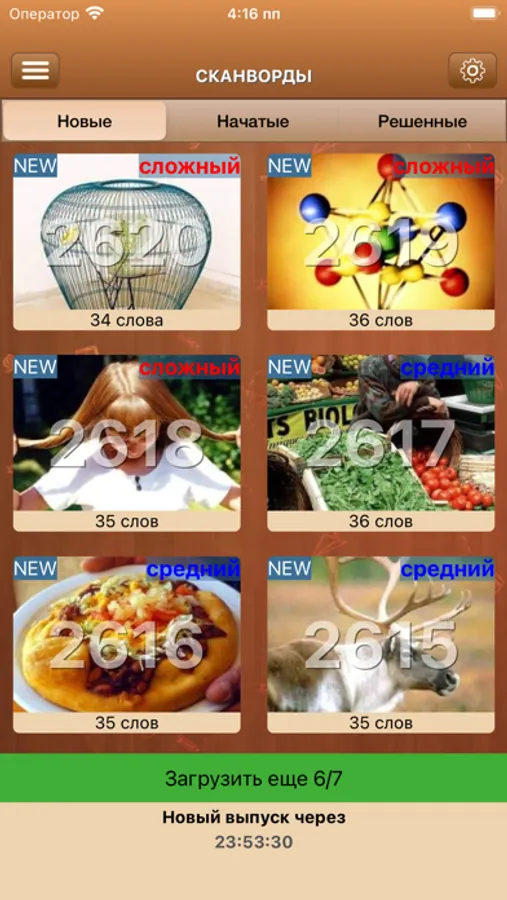 Для загрузки новых ежедневных сканвордов необходимо соединение вашего мобильного устройства с Интернетом.