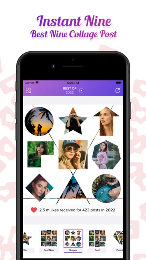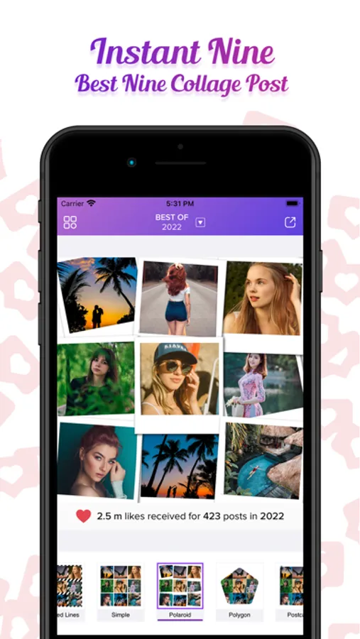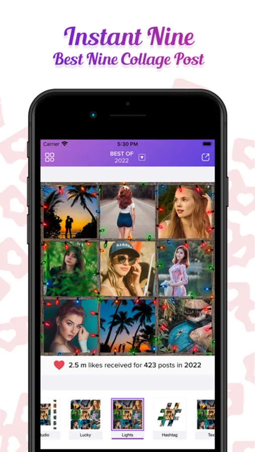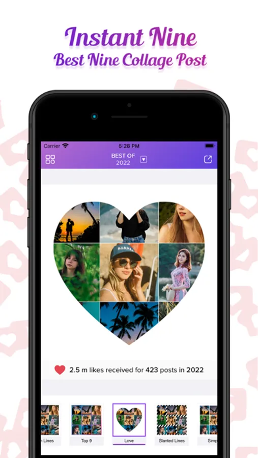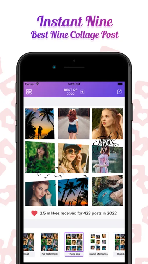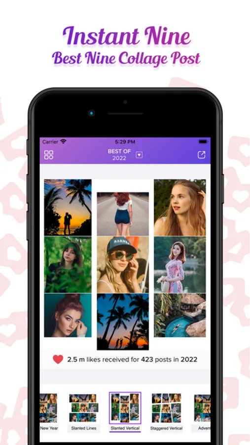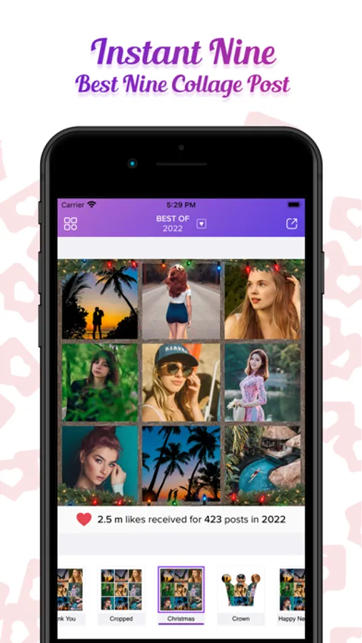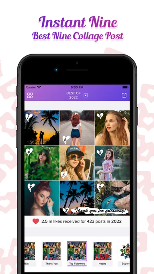Instant Nine - Top Nine is a best nine grids app that generates a pic grid collage with the nine most successful posts you've uploaded to your Instagram account throughout the entire year. Instant Nine - Top Nine, you can easily share the posts that were the most popular with your followers!