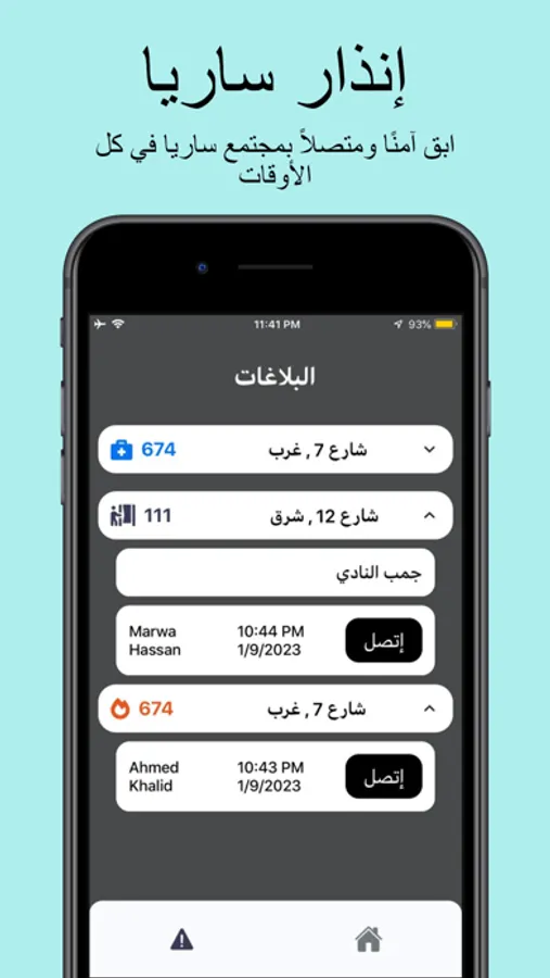 مرحبًا بك في تطبيق إنذار ساريا ، التطبيق الذي يسمح لك بتنبيه جيرانك بسرعة وسهولة بالمخاطر المحتملة في مجتمعك. باستخدام التطبيق يمكنك إرسال إشعارات الحريق والطوارئ الطبية والوفاة والسرقة مباشرة إلى هواتف جيرانك.