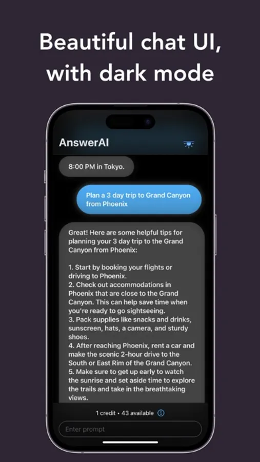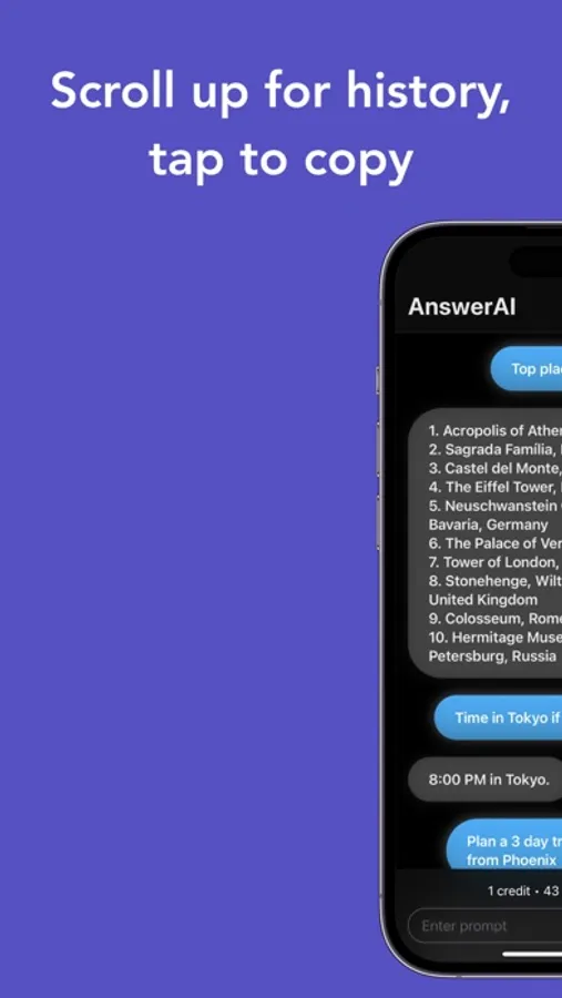 Here is the simplest, easiest way to access AI's power from your phone. Interact with AI anytime, anywhere, in a chat-like interface optimized for your phone. No need to use a website - just open the app and begin asking.