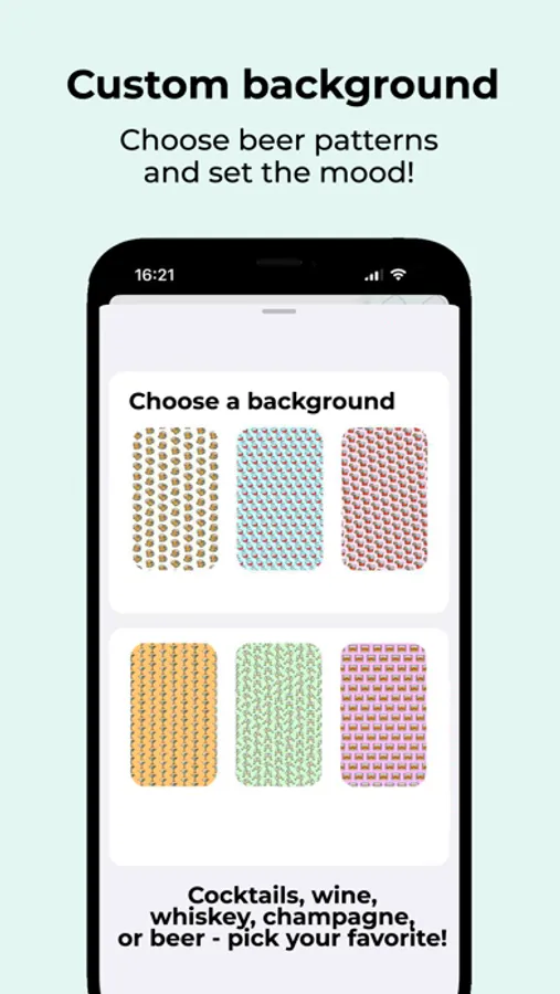 • Individual style: Choose icons (beer, wine, champagne) and change the background.