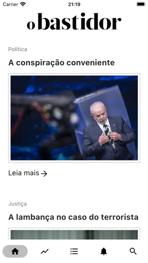 * Alertas em push para notícias relevantes. Sem ruído ou caça-clique: se o Bastidor disparou um alerta, a informação é essencial.