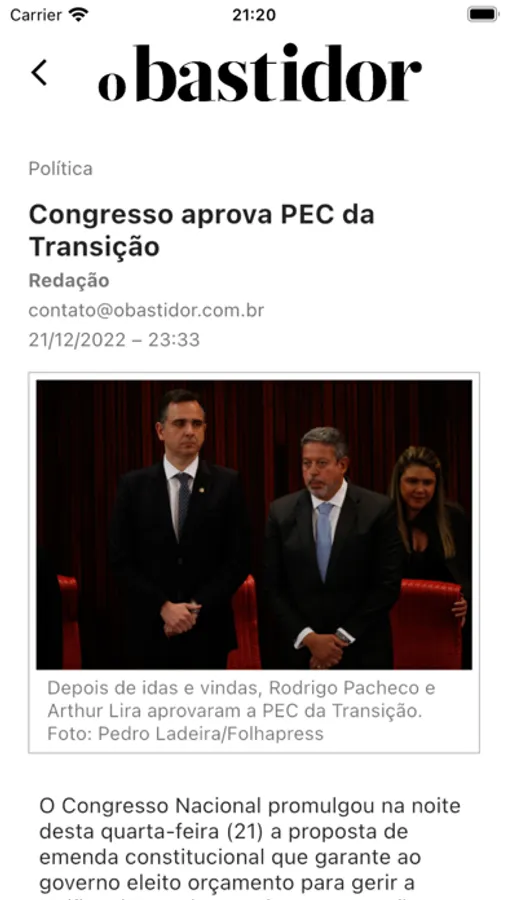 * Navegação rápida e acesso instantâneo às notícias do Bastidor, em ordem cronológica. Sem complicações.